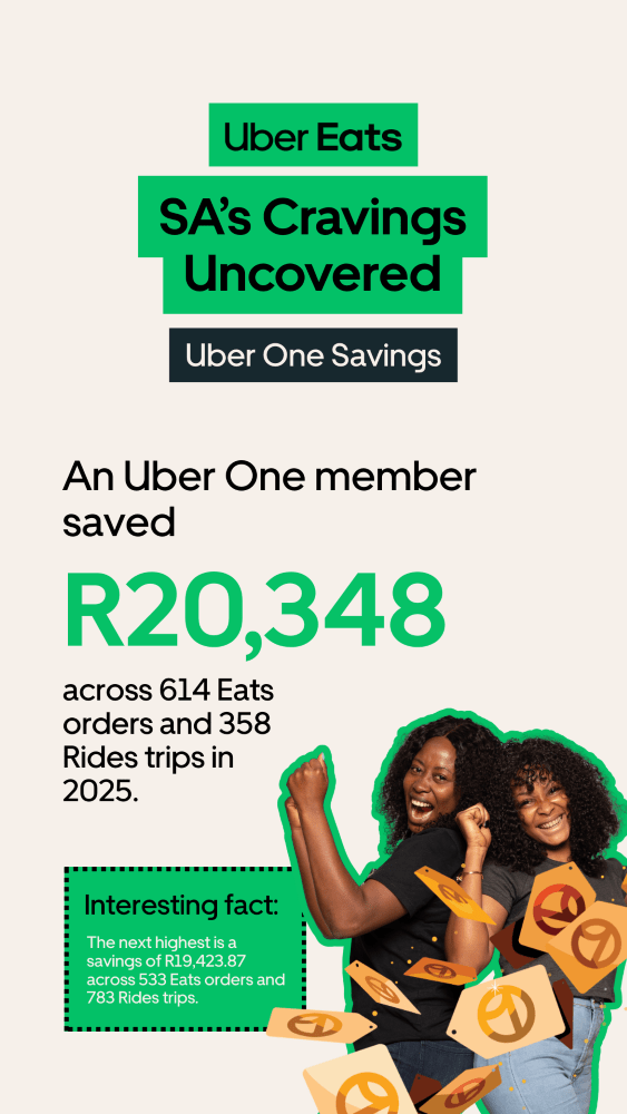 On the flip side, this year’s Uber One champion saved over R20,000 this year, with more than R18,000 saved on Uber Eats orders alone. That’s basically a holiday fund, a new wardrobe, or approximately 2,000 fried chicken meals. Proof that loyalty really pays off.