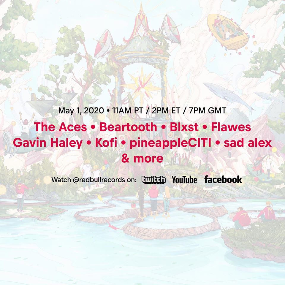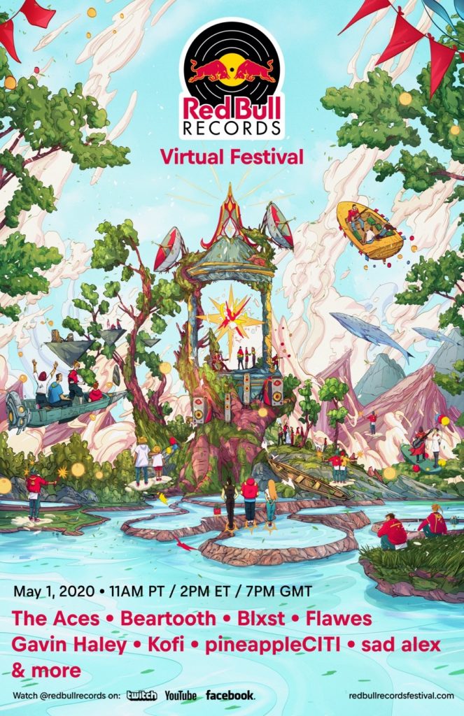 Hosted by DJ and television/radio host Hannah Rad, Red Bull Records Virtual Festival will include sets from pop quartet The Aces, hardcore band Beartooth, rapper/producer Blxst, UK alt-pop trio Flawes, indie melodist Gavin Haley, hip-hop artists Kofi and pineappleCITI, and singer-songwriter Sad Alex, with more to be announced.