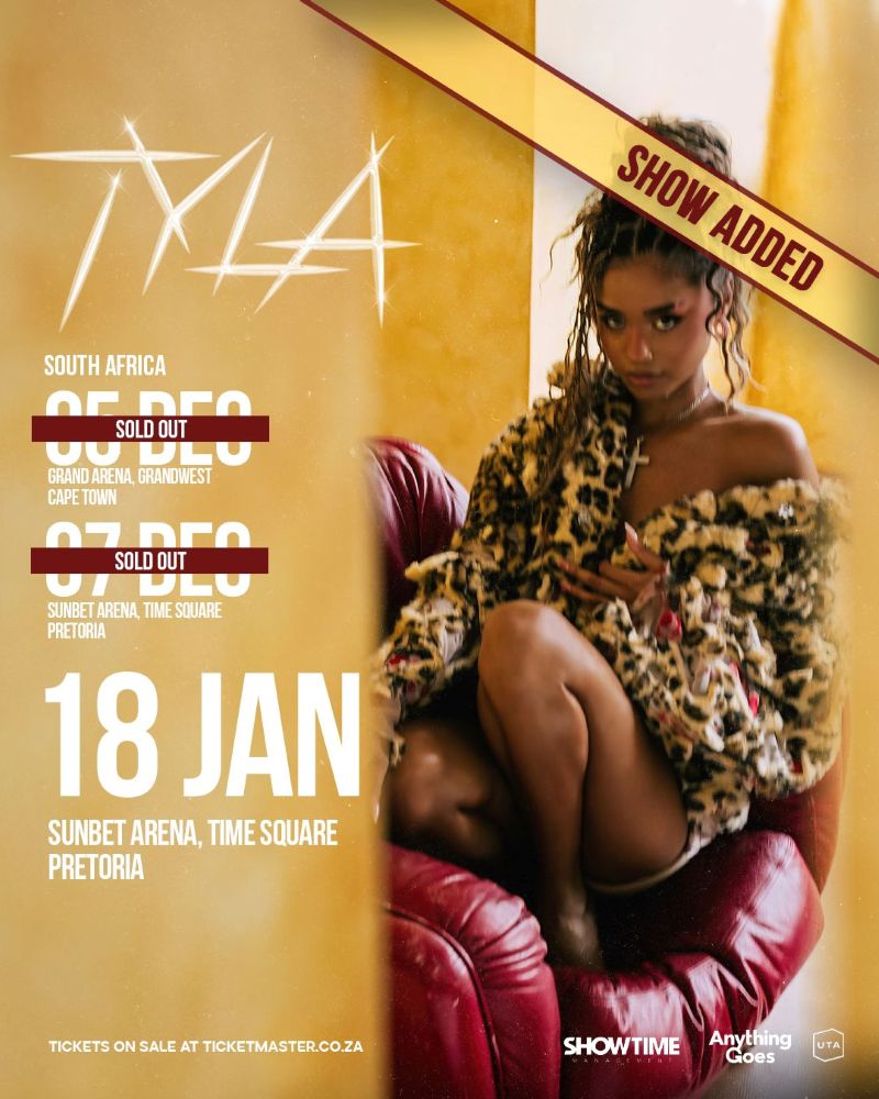 This extension to the Tyla SA Tour is proudly brought to you by leading local promoters Anything Goes and Showtime Management. Tickets for the January show, priced from R500 each are on sale at www.ticketmaster.co.za, the exclusive official Tyla SA ticketing agent. Support acts and guest artists will be announced in due course.