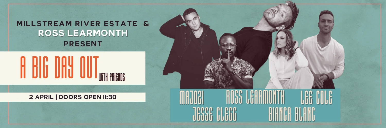 This coming April, Ross Learmonth will present to the public ‘A BIG DAY OUT with friends’ show at Millstream Estate in Hartbeespoort; to celebrate the launch of his brand new debut solo album entitled ‘Carousel’. Artists Set To Perform At A Big Day Out Show on the stage will be a few of SA’s most loved acts such as Majozi, Jesse Clegg, Bianca Blanc and Lee Cole.