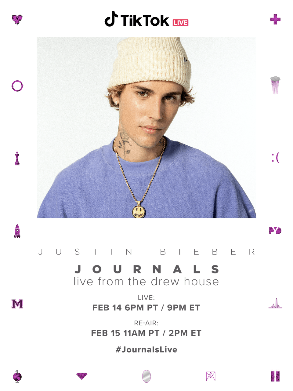“I’m excited to bring this show to life,” says Justin Bieber. “Journals is one of my favorite projects and I’ve never performed it live. I’m grateful to TikTok for helping me to bring this show to everyone on Valentine’s Day.”