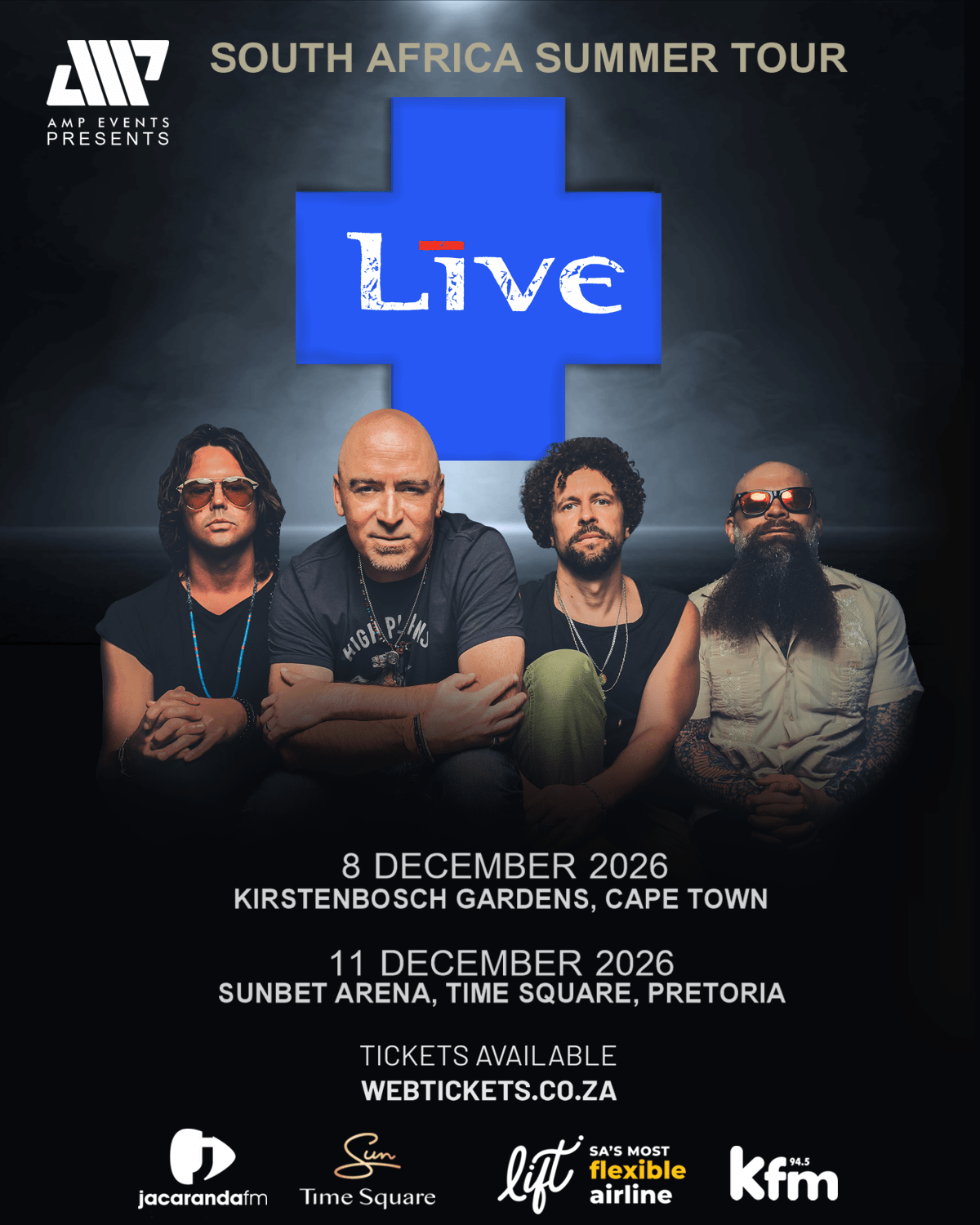 With a career spanning more than 30 years, LIVE remain one of the most recognisable alternative rock bands of the 90s and 2000s, known for era defining hits including Lightning Crashes, I Alone, All Over You and Heaven. Their previous South African tour was a record selling success. Packed venues and unforgettable performances that cemented their deep connection with local audiences. Now, in 2026, they return for two very special shows.