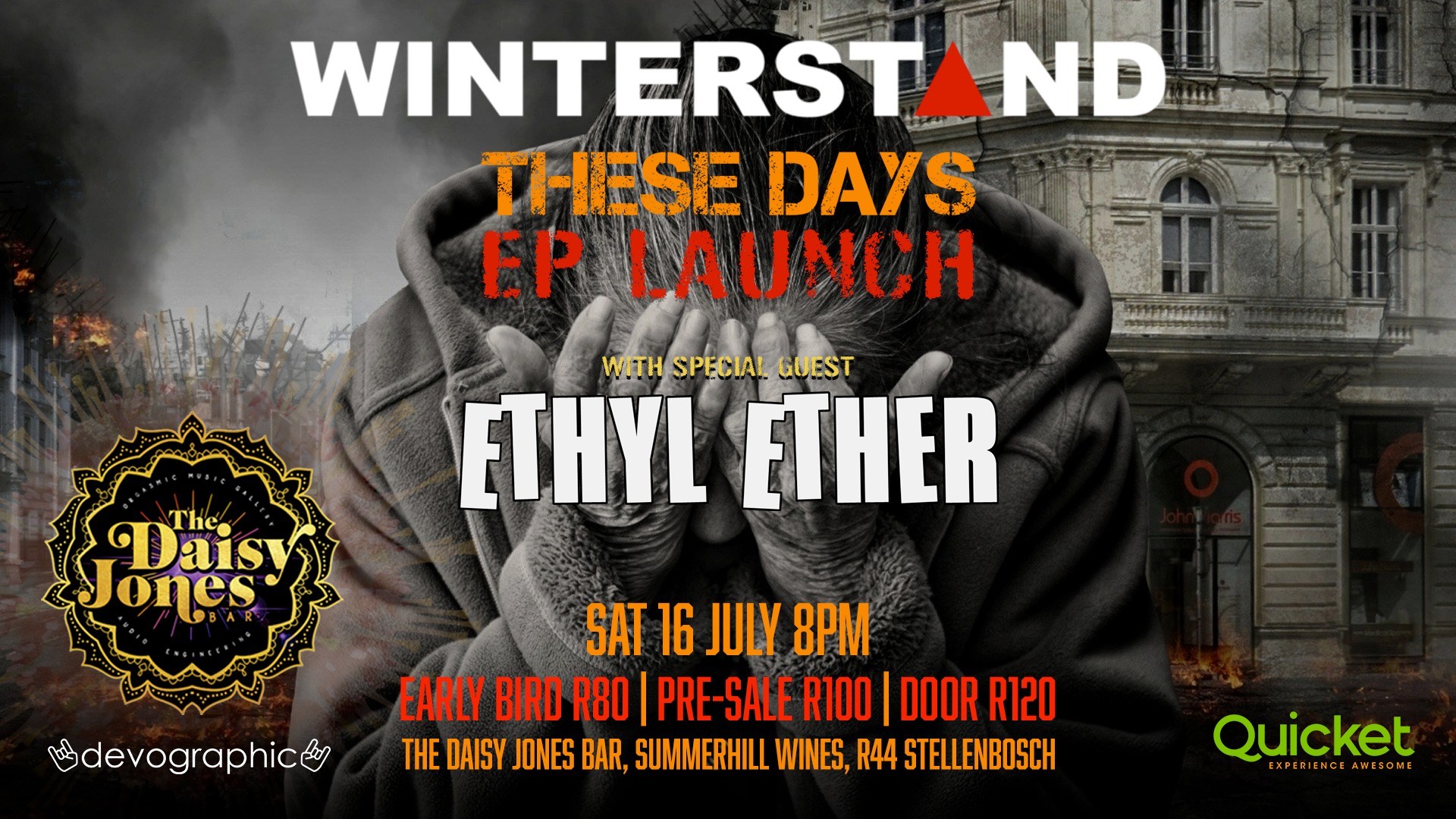 Their new EP “These Days” releases today, with an energetic Release Show at The Daisy Jones Bar on Saturday 16 July with special guests Ethyl Ether. The EP is all about life and mastering its challenges. One can choose to be depressed by events, but life goes by, and before you know it, all of the times you could have spent enjoying it passed you by. No matter how hard things are, one should always realize that there is a solution out there. Winterstand had major setbacks and challenges, not only as a band, but as individuals, but in spite of that, they chose to not give-up, and at the same time, they chose to stick to their morals while doing so.