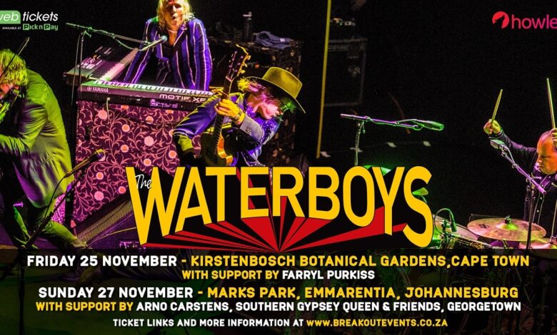The Waterboys are set to perform in Cape Town at Kirstenbosch National Botanical Gardens on Friday 25 November 2022 and in Johannesburg at Marks Park (Emmarentia) on Sunday 27 November 2022. Tickets purchased for the initial shows are still valid for the new show dates in 2022.